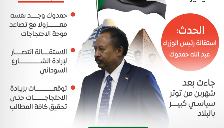 وقدم حمدوك استقالته بعد شهرين من توتر سياسي رجح خبراء أن تزيد تلك الخطوة الأوضاع في السودان تعقيداً وأن البلاد صارت في مفترق طرق، مع غياب التفاؤل بوفاق قريب يخرج البلاد من أزمتها.