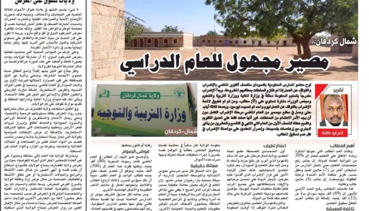 صحيفة (الإنتباهة) رصد ظلال هذا الإضراب على أولياء الأمور ومستقبل الطلاب والواقع الحقيقي للمعلم بولاية شمال كردفان إلى جانب مقترحات الحلول من الجهات الرسمية وأصحاب القضية من المعلمين كما وقفت على رؤية أصحاب المدارس الخاصة حول تضمينهم للإضراب فكانت هذه الحصيلة: