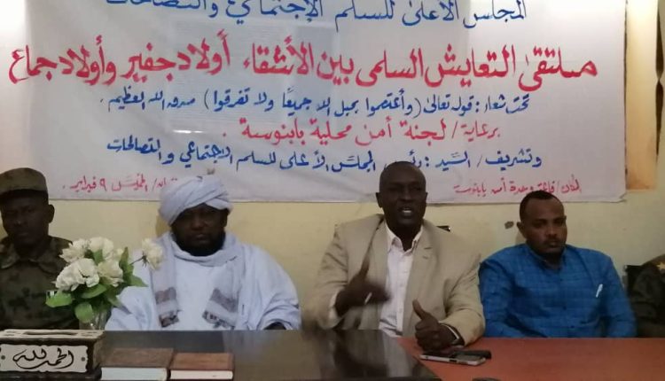 اما رئيس لجنة المساعي الحميدة بمحلية بابنوسة الاستاذ فضل محمد عبيدالله فقد أكد علي أهمية التعايش وقبول الآخر وعدم تأجيج الصراعات بالقضايا الصغيرة منادياً الطرفين بالبعد عن العصبية الضيقة ومحاربة المتفلتين ومن يثير النعرات ويسعي للفتنة بين الطرفين …