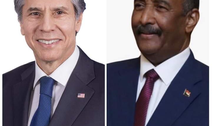 واطلع البرهان ، بلينكن، على سير العملية السياسية بالبلاد والتحديات التي تواجهها.