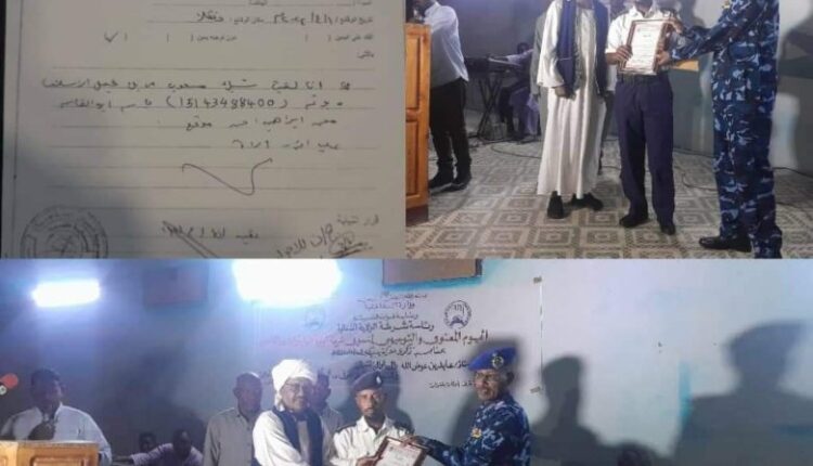 و تم منحه ثناء مدير شرطة الولاية وحافز مادي من والي الولاية المكلف .
