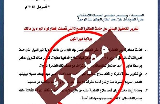 وأشار إلى أن اللجوء لنشر وفبركة مثل هذه التقارير ماهو إلا محاولات يائسة من قبل مليشيا الدعم السريع الإرهابية المتمردة للتغطية على هزائمها والسعي لشق التلاحم الكبير غير المسبوق بين القوات النظامية المختلفة والالتفاف الشعبي حولها لدحر ما تبقى من مرتزقة مليشيا الدعم السريع.