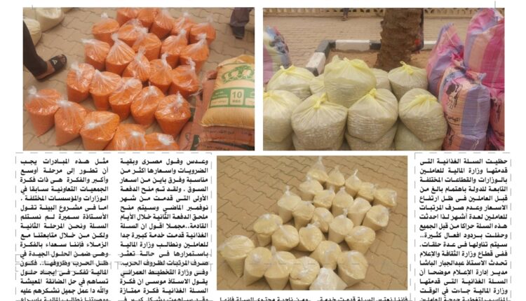 وكان أول المتحدثين للصحيفة مدير عام وزارة المالية والإقتصاد والقوى العاملة الوزير المكلف الأستاذ الهادي ناصر منير الذي أوضح أن مشروع سلة العاملين بالولاية يأتي في إطار إهتمام حكومة الولاية بقضايا العاملين وتخفيف أعباء المعيشة، خاصة في ظل تأخر صرف المرتبات مؤكدا أن المشروع جاء بالتعاون والتنسيق مع حكومة الولاية وبنك ام درمان الوطني وتم بمجهودات ورعاية والي شمال كردفان عبدالخالق عبداللطيف مبينا أن السلة تشمل 8 أصناف من المواد الغذائية بمبلغ 83 الف جنيه يتم خصمها بأقساط لمدة عشر أشهر وأن التكلفة الكلية بلغت أكثر من 2 مليار جنيه يستفيد منها أكثر من 27 الف موظف وعامل مؤكدا إهتمام حكومة الولاية بقضايا العاملين وتحسين وضعهم المعيشي وأن الحكومة تتحمل ارباح هذه السلة ولا تخصم من العاملين حتى تستقر المرتبات.