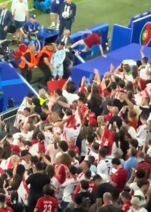 كاد أن يتعرض كريستيانو رونالدو قائد منتخب البرتغال لضربة في صدره من قبل أحد المشجعين بعد الخسارة أمام جورجيا.إعلان