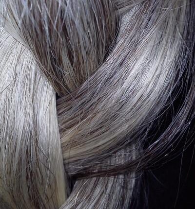 مع التقدم في السن، تنتج بصيلات الشعر كمية أقل من الميلانين، وهي الصبغة المسؤولة عن لون الشعر، مما يؤدي إلى ظهور الشعر الرمادي والأبيض.