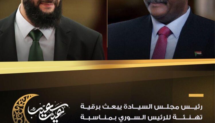 رئيس مجلس السيادة الانتقالي الفريق أول الركن عبدالفتاح البرهان يبعث برقية تهنئة لرئيس الجمهورية العربية السورية صاحب الفخامة أحمد الشرع، بمناسبة عيد الفطر المبارك .