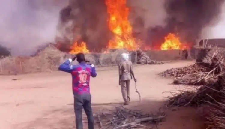 وقالت مصادر بأن المليشيا هجمت على القرية نهار اليوم بغرض النهب تصدى لهم الأهالي ببعض بنادق الكلاشنكوف الخاصة بهم تمكنوا من إصابة عدد من عناصر المليشيا وردع القوة المهاجم التي ولت هاربة، ساعة من الزمن عادت المليشيا الهجوم على القرية بقوة أكبر قدما من مدينة بارا مدججة بعشرات المركبات القتا.لية بكامل أسلحتها قامت بحرق القرية بالكامل وقت.ل كل من وجدوه أمامهم من رجال ونساء وأطفال وشيوخ، إلى الآن لا توجد إحصائية دقيقة عن عدد الضحايا من أهالي القرية.