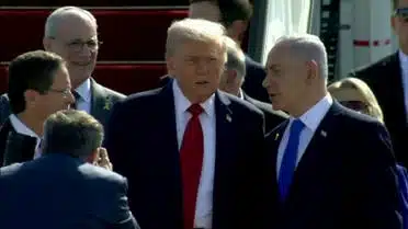 حطّت طائرة الرئاسة الأمريكية في مطار بن غوريون وسط استقبال رسمي كبير تقدمه الرئيس الإسرائيلي إسحق هرتسوغ ورئيس الوزراء بنيامين نتنياهو. ومن المنتظر أن يلقي ترامب خطابًا في الكنيست الإسرائيلي خلال زيارته، التي تعد الأولى له منذ إعادة انتخابه رئيسًا للولايات المتحدة.