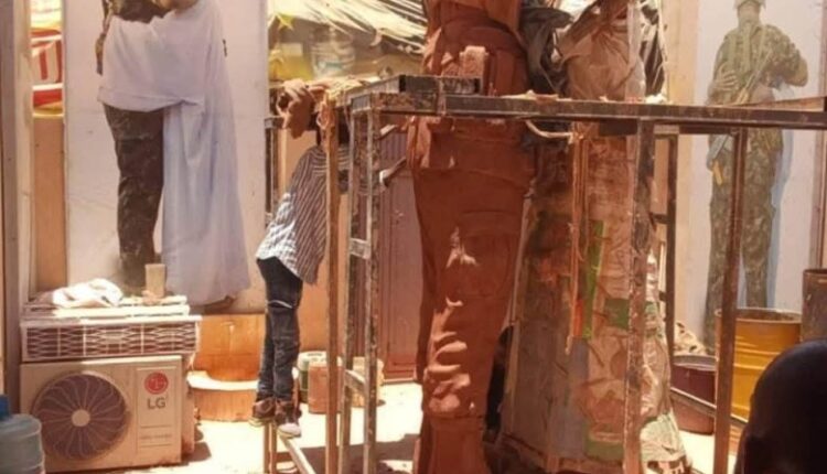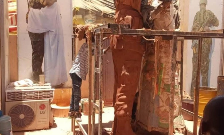 وجه رئيس مجلس السيادة عبد الفتاح البرهان ازالة نصب تمثال يجسد صورة البرهان وامراة من نازحي دارفور