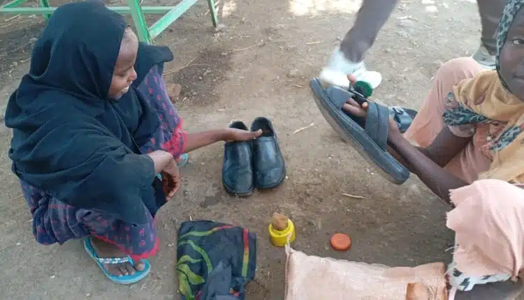 تداول ناشطون في ولاية القضارف شرقي السودان، صورة لبنتين في سن التمدرس يعملن في مهنة تلميع الأحذية “الأورنيش” في سوق مدينة القضارف، وهن من أطفال النازحين الذين قدموا إلى الولاية من مناطق أخرى جراء الحرب في البلاد، وقال ناشطون إن العمل ليس عيبا لكنه يعد أمرًا صعبًا على طفلات في هذا السن في مهنة عرفت بأنها مهنة الرجال في السودان وغير المألوف أن تعمل بها النساء.