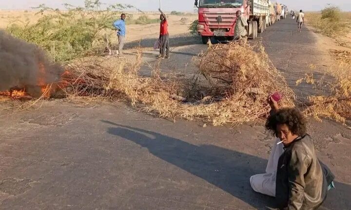 محتجون يغلقون الطريق القومي كسلا- القضارف- بورتسودان