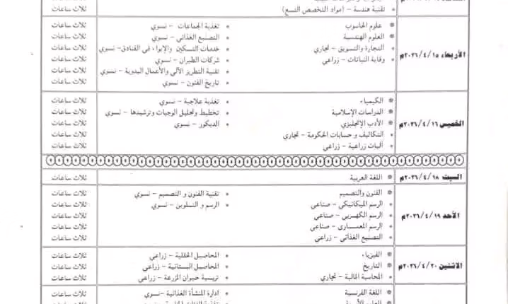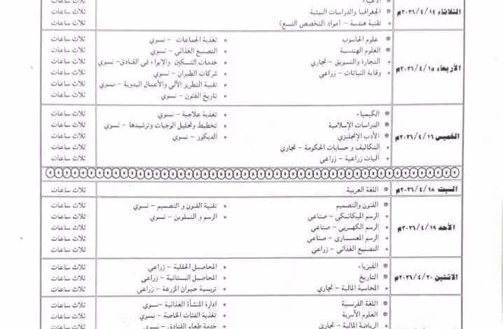 التربية تعلن عن جدول امتحانات الشهادة الثانوية2026