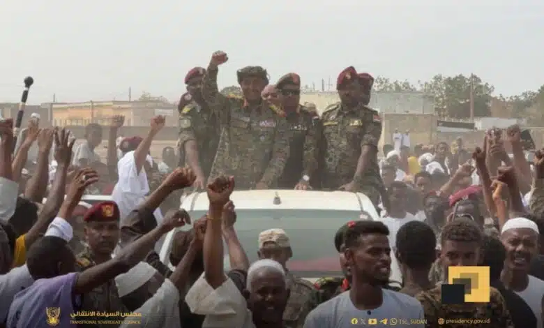 وتوقّف البرهان وسط الحشود، مترجلًا من سيارته لمعانقة الأمير الطيب الإمام جودة، الذي فرضت عليه عقوبات أوروبية، في لقطة أثارت اهتمام الحاضرين وأضفت بعدًا رمزيًا على الزيارة. وقد بدا التفاعل الشعبي بارزًا، مع تدافع المواطنين لتحيته والتقاط الصور معه.