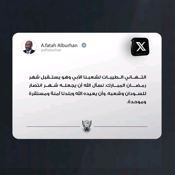 البرهان يهنئ السودانيين بشهر رمضان ويتمنى لهم الأمن والاستقرار