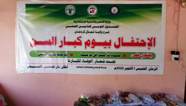 احتفل الصندوق القومي للتأمين الصحي بشمال كردفان باليوم العالمي لكبار السن، وفي تصريح لوكالة السودان للانباء أوضح دكتور ابراهيم الانصاري مدير فرع الصندوق بالولاية أن إحتفالات اليوم العالمي للكبار هذا العام تأتي تحت شعار الوفاء لكبارنا ( لأمي وأبي وجدي وحبوبة ).