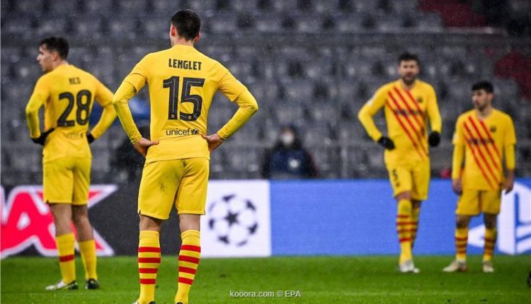 وأضافت في عناوين فرعية “برشلونة خارج ثمن النهائي لأول مرة منذ 21 عاما بعد دور مجموعات كارثي” و”برشلونة ظهر مجددا بمستوى أقل بكثير أمام البايرن وسيلعب الدوري الأوروبي اعتبارا من فبراير/ شباط”.